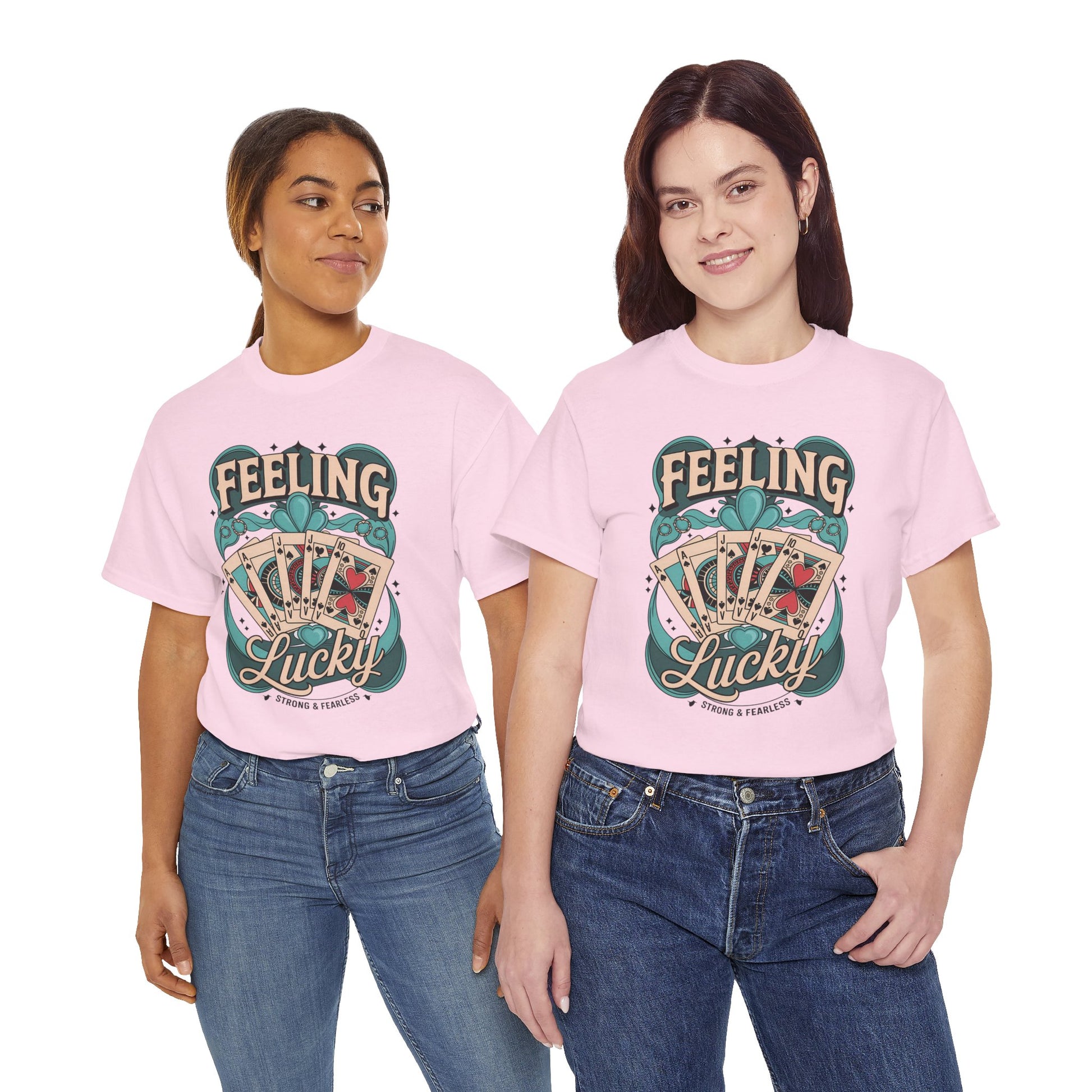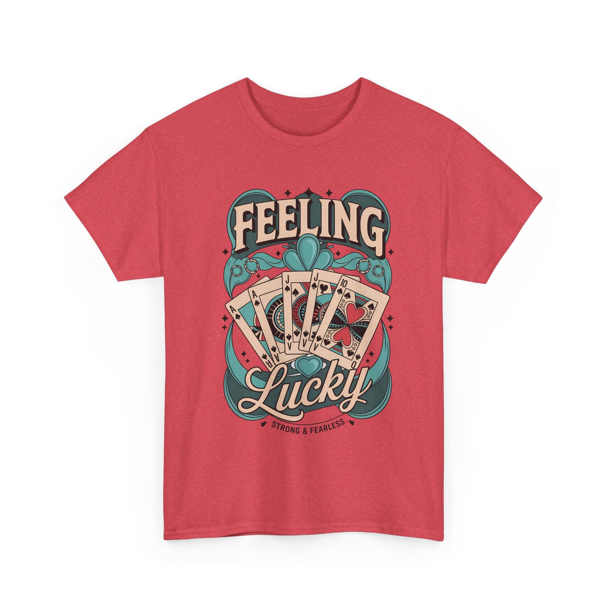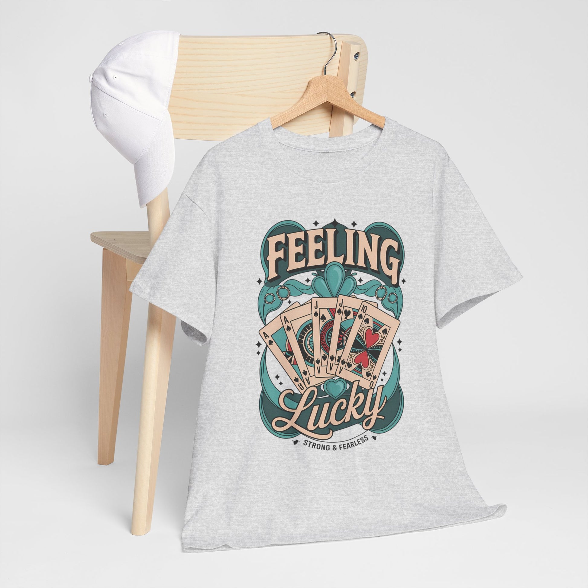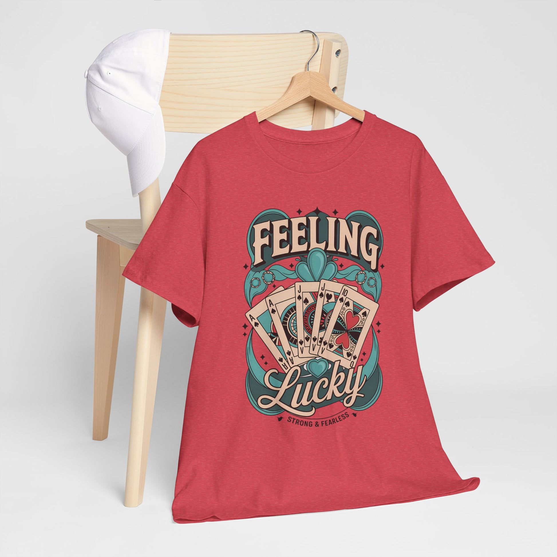 Introducing the Heavy Cotton Tee, a perfect blend of style and comfort that radiates a casual, laid-back vibe. This tee, featuring a vibrant 'Feeling Lucky' design, is ideal for those who want to express their fun side while enjoying everyday wear. Made from soft, durable cotton, it’s designed for year-round comfort, making it your go-to choice for any occasion - be it casual gatherings, game nights, or simply lounging at home.